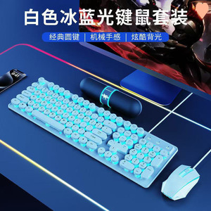 【键鼠套装】白色蓝光+鼠标-复古园键