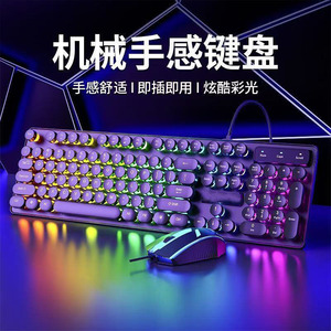 复古朋克机械手感键盘游戏键盘耳机有线电竞游戏台式笔记本批发