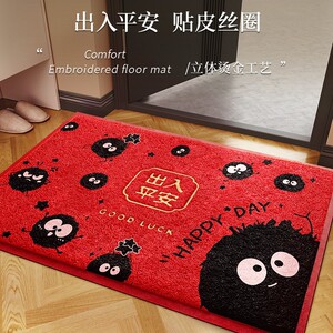 奇趣小煤球出入平安红色贴皮压花丝圈地垫