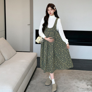 孕妇装2025新款秋季蕾丝孕妇上衣牛仔提花韩版孕妇连衣裙