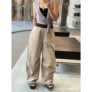 2025早秋新款小众设计美式复古松紧腰宽松直筒显瘦百搭阔腿裤女