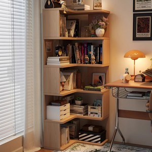 中古风转角书架角柜墙角三角形收纳柜实木书柜90度拐角柜一体靠墙