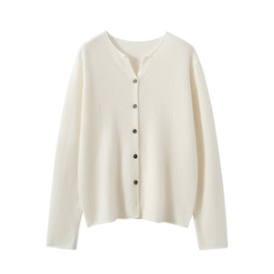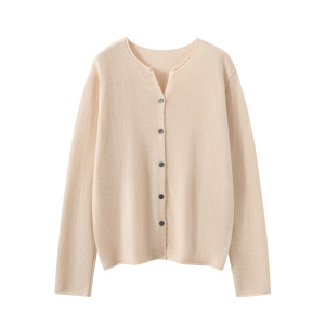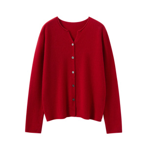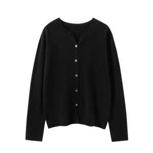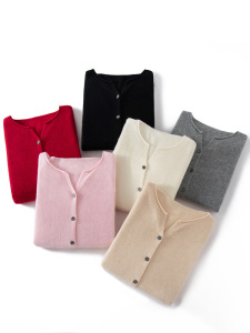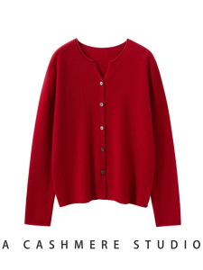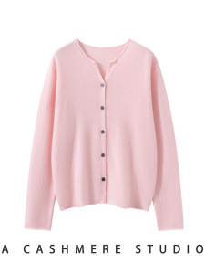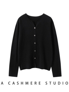轻奢纯山羊绒开衫女2025秋冬剪刀领针织衫毛衣外套上衣外搭打底衫