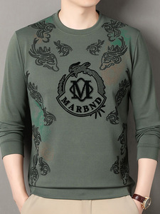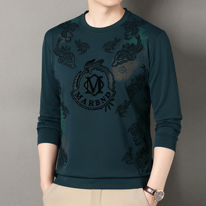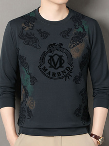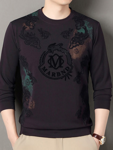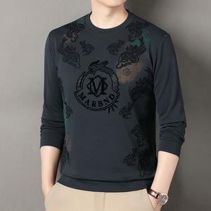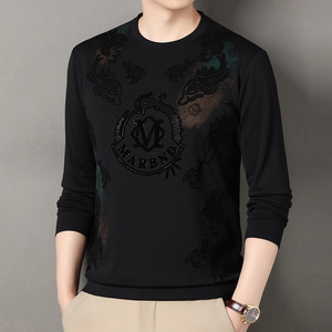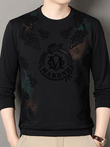 2025秋季新款重工艺卫衣植绒印花长袖男士圆领时尚潮流打底衫上衣