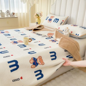 新款A类四季通用A版全棉B版牛奶绒单件夹棉炕盖床盖多功能床单