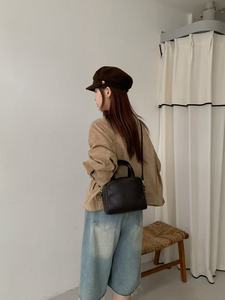 头层牛皮波士顿手提保龄球包高级感时尚简约手提包通勤百搭斜跨包
