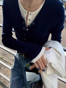 假两件上衣女亨利领长袖T恤外穿秋针织衫打底衫设计感小众