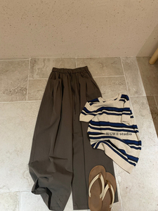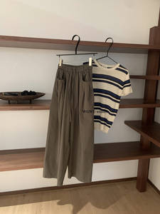 WGWE秋季时髦雅痞腔调双压褶系带显瘦气球裤拖地裤休闲裤女W6992