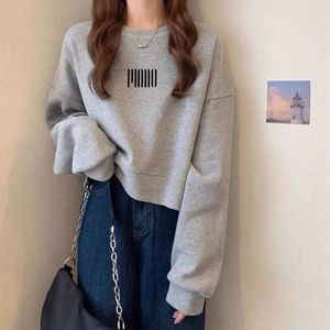 宽松圆领套头短款卫衣秋冬长袖上衣女高腰显瘦小个子春秋薄款