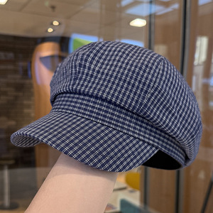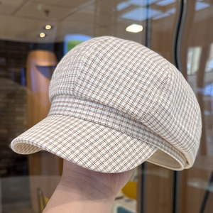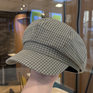 百搭气质时尚格子八角帽春夏薄款气质画家帽大头围英伦复古贝雷帽