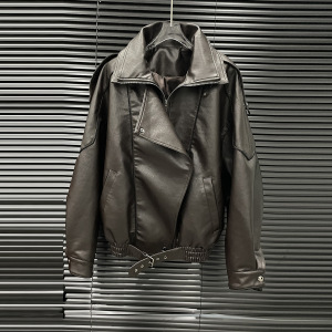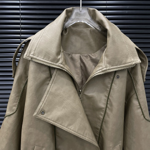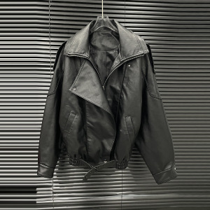 2025年早秋新款翻领皮衣外套女小众设计宽松复古休闲夹克上衣