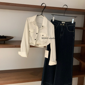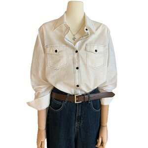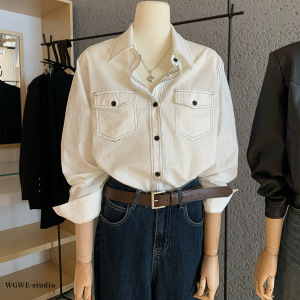 WGWE6843巴黎假日'透气小香风撞色明线宽松衬衫