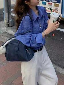 「miu系衬衫」皱感肌理立体格子衬衫外套2025秋季小众衬衣