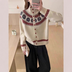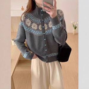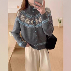 翻领女装毛衣女韩系高领针织开衫复古慵懒风内搭打底宽松加厚外套