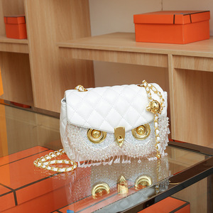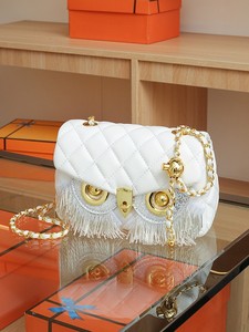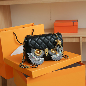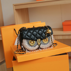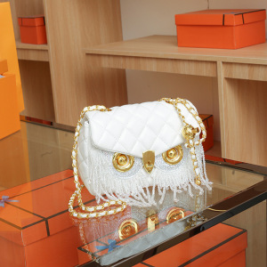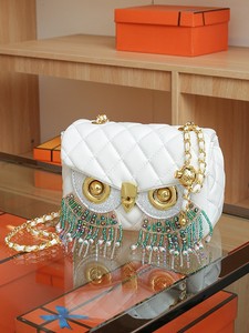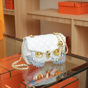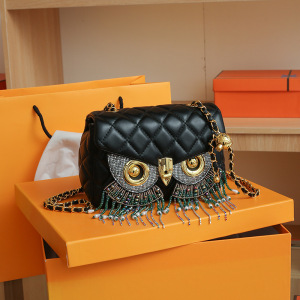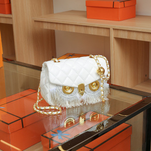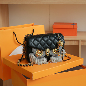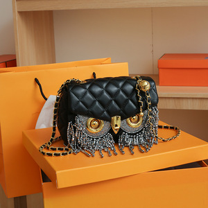 猫头鹰包包女2025休闲新款小众链条女包水钻白流苏单肩斜挎腋下包