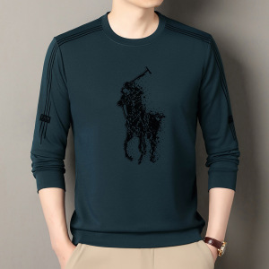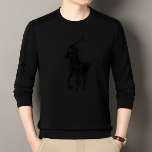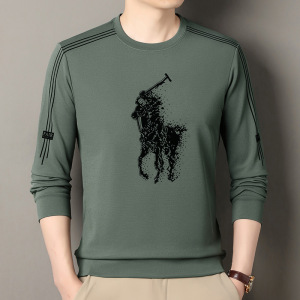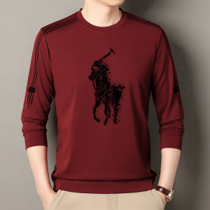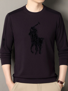 跨境男士马标卫衣长袖T恤2025秋冬新款植绒圆领宽松休闲打底上衣