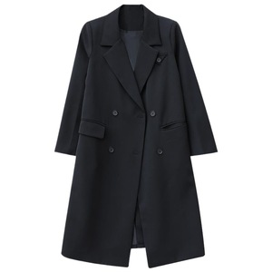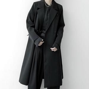 黑色双排扣长款西装外套女中长款2025秋冬新款韩版宽松风衣外套