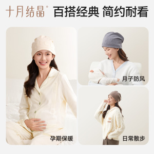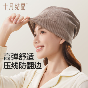 十月结晶月子帽秋冬时尚保暖堆堆帽加厚包头帽大头围LUCK潮流堆帽