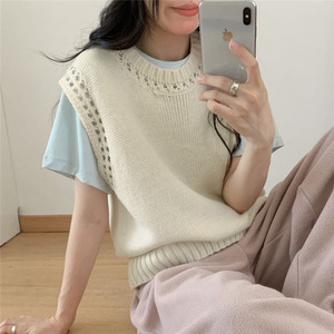 叠穿镂空针织衫毛衣马甲女2025春秋新款外搭圆领背心秋冬毛线马夹