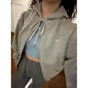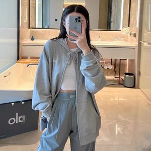 ALO宽松外套女2025新款春秋灰色连帽开衫卫衣休闲百搭运动瑜伽服