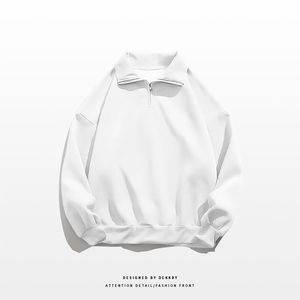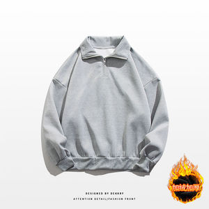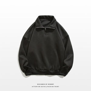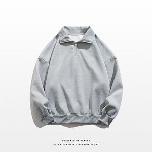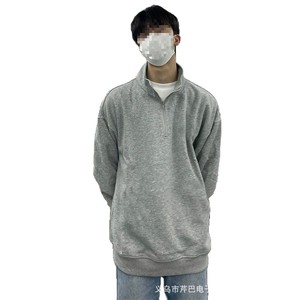秋季街头简约基础款半拉链卫衣男痞帅休闲百搭浅灰色立领上衣ins