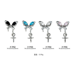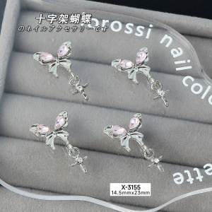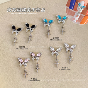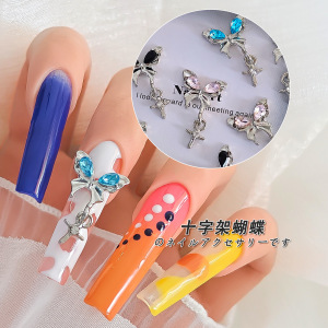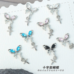 跨境新款十字架蝴蝶美甲饰品网红立体轻奢装饰合金流苏配件指甲钻