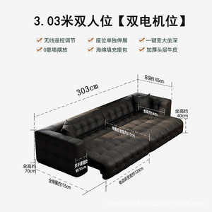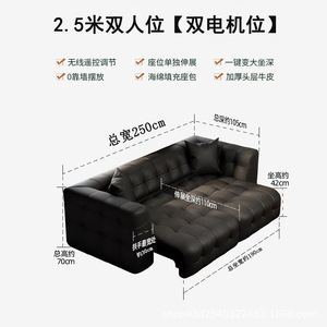意式极简轻奢真皮沙发客厅棉花糖沙发现代极简直排黑色电动沙发床