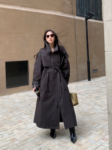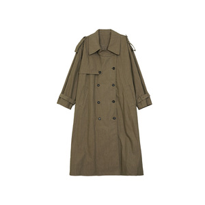 万为 法式双排扣外套女2025秋季新款褶皱肌理感廓形长款风衣P2115