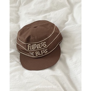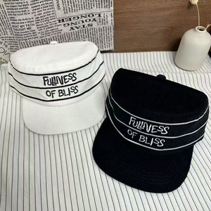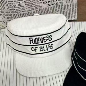 韩国新款小众设计师条纹平顶海军棒球帽子女字母刺绣平檐鸭舌帽