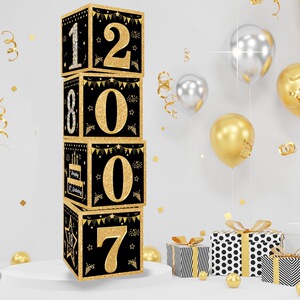 2025黑金生日周岁气球盒子18岁50岁气球盒子套装派对氛围墙装饰品