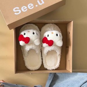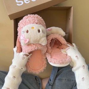 可爱韩版凯蒂猫羊羔毛棉拖鞋女2025年冬季新款居家舒适包头毛毛鞋
