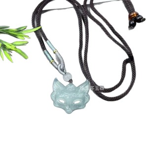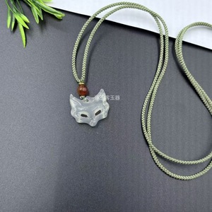白玉髓狐狸面具小号 带图片彩色豆绿绳子