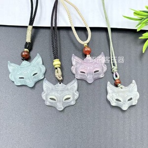 粉玉髓狐狸面具大号 带图片咖色绳子