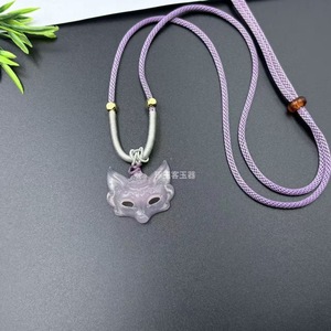 粉玉髓狐狸面具大号 带图片同心结紫色绳子