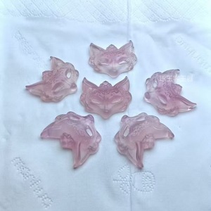 粉玉髓狐狸面具大号 带图片金珠米色绳