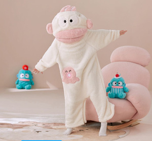 搞怪丑鱼珊瑚绒儿童连体睡衣丑鱼冬加绒保暖可爱中大童卡通家居服