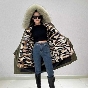 冬款防风保暖皮草外套 加厚内胆派克服 飘带长款水貂毛内胆派克服