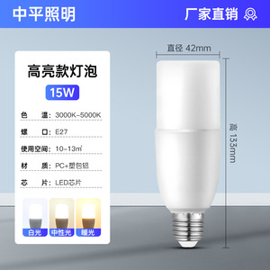 led灯泡 家用e27螺口节能灯超亮白光小圆柱形U筒灯浴霸防水玉米灯