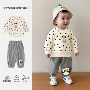 婴幼儿秋季2025年新款套装a类韩版卡通可爱卡通男宝宝两件套套装