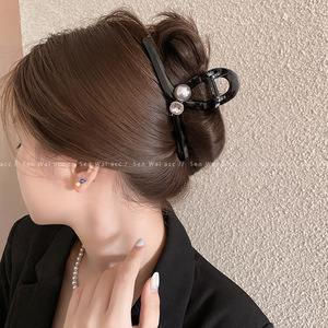 高级感2025年珍珠小号抓夹女后脑勺发量多发夹鲨鱼夹盘发发抓批发