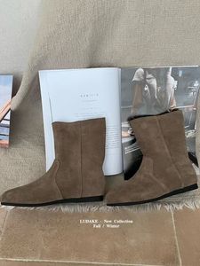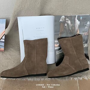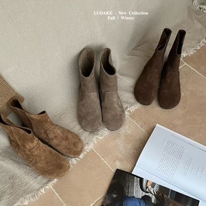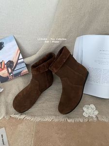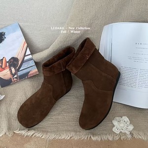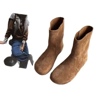 全牛皮版!勃肯短靴女大圆头复古美拉德大筒围胖MM显瘦平底马丁靴