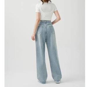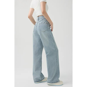 秋季新款大码刺绣牛仔裤女高腰宽松显瘦遮肉阔腿直筒大码女装