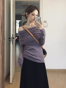 法式紫色一字肩连衣裙子女早秋季2025新款韩系小个子穿搭套装长裙