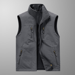 春秋冬季双面穿马甲男士户外运动抓绒背心摇粒绒坎肩加绒加厚马夹