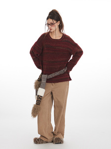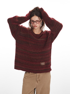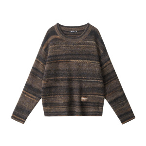 HeyHenry 秋冬季圆领套头条纹毛衣女情侣宽松慵懒外穿复古针织衫