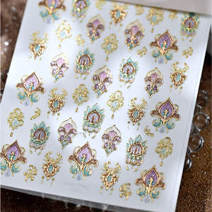 新中式国风敦煌彩塑甲花美甲贴纸法式花朵浮雕立体穿戴甲装饰品