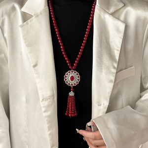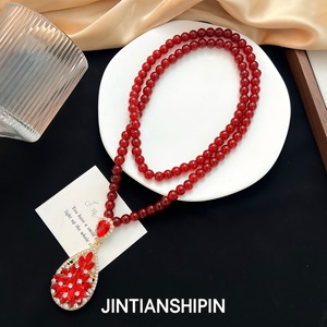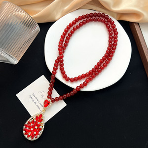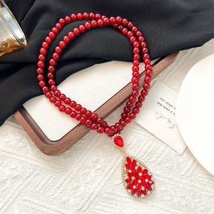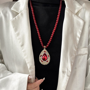 复古百搭红色水滴毛衣链轻奢质感高端长款项链秋冬百搭衣服配饰