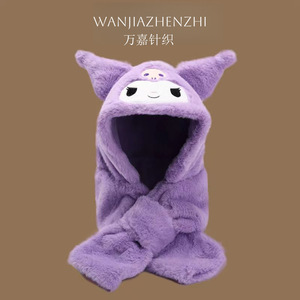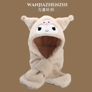 卡皮巴拉儿童帽子耳朵会动宝宝护耳帽围巾一体冬季保暖防寒毛绒帽