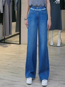 哥家商场同款女装2025秋季简约气质休闲百搭高腰直筒裤垂感牛仔裤