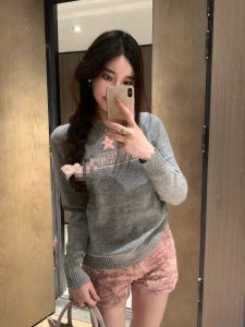 正确版~25早秋新款经典羊毛混纺幸运星星字母提花长袖针织衫毛衣